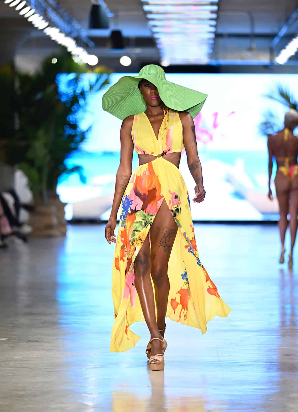 Then Custo Barcelona effected an environment with their famous graphic designs imprinted on youthful garments. In addition to an intriguing jumpsuit in white and variations of green tones, there were dresses in various forms: sleeveless, sleeves short and long, and slit models. Nike and Cross Colours showed not only swimwear but also activewear and streetwear pieces. The oversized yellow jacket was magnificently fulsome, and the male models’ short shorts were likewise. Nike’s bikinis and one-piece swimsuits were well-structured and conceived in a basis of versatility and comfort.