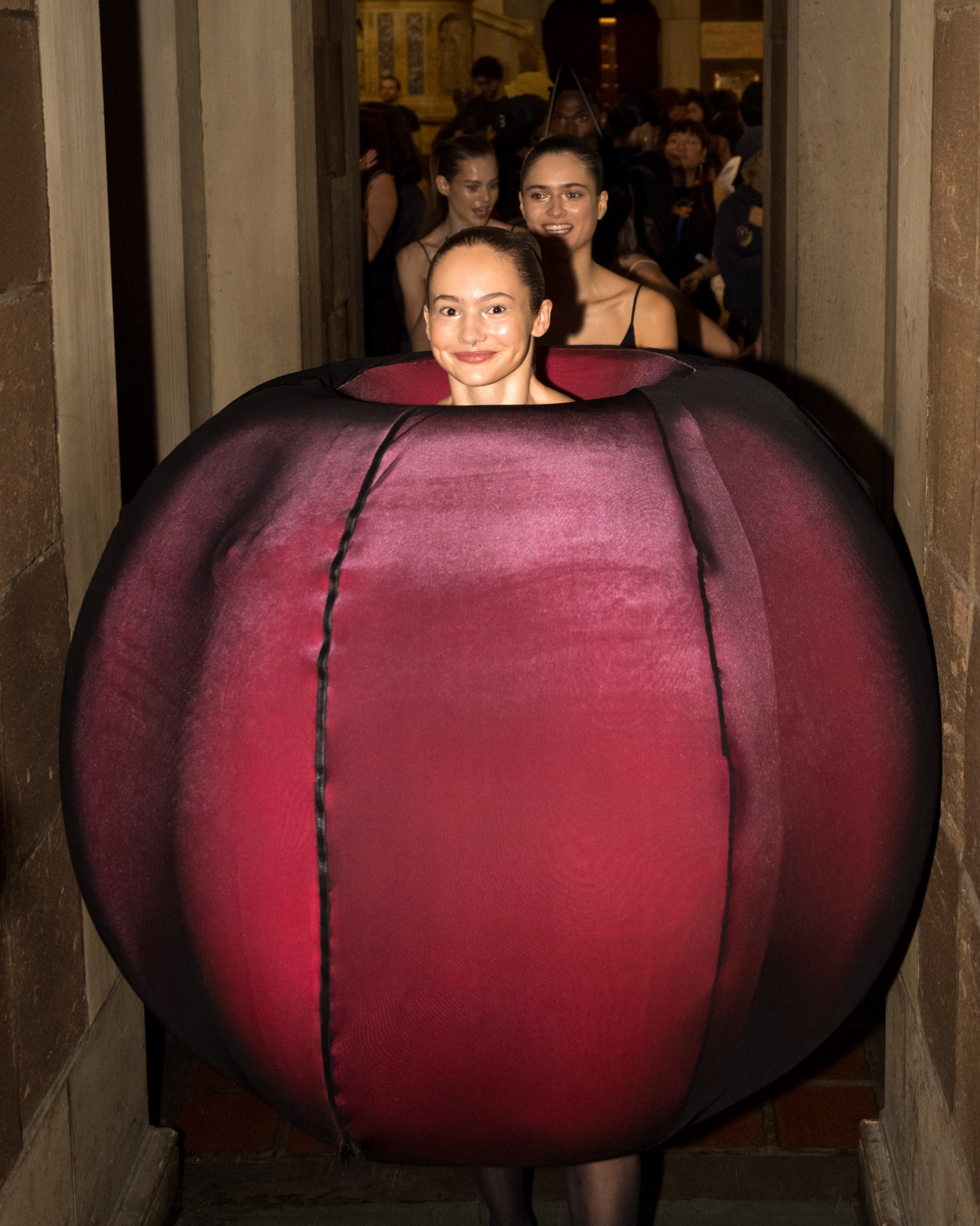 The influence of ballet was evident throughout the collection, particularly in the flowing lines and delicate details of the clothing. Dresses moved with an elegant, almost ethereal quality, contributing to the collection’s sense of drama. This ballet-inspired movement not only added an air of sophistication but also reinforced the narrative of transformation and transcendence inherent in Zhou’s vision.