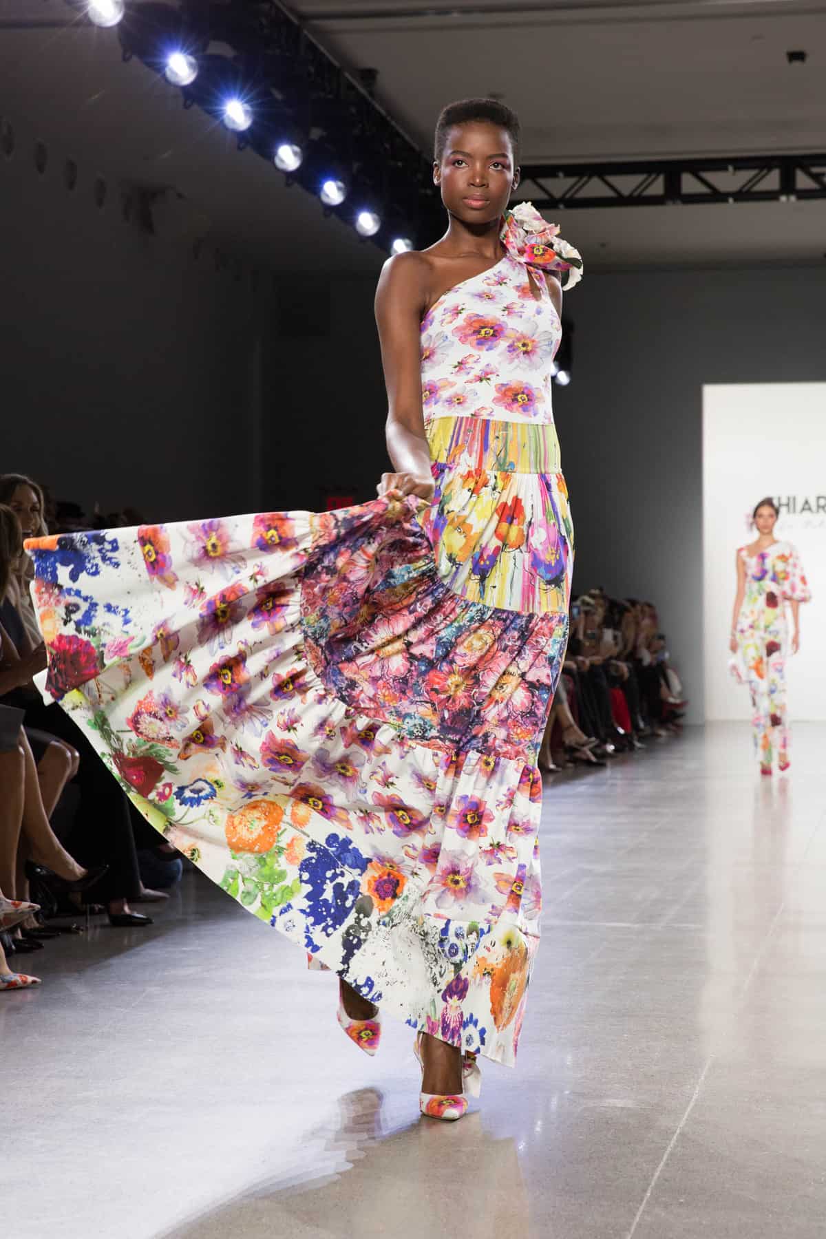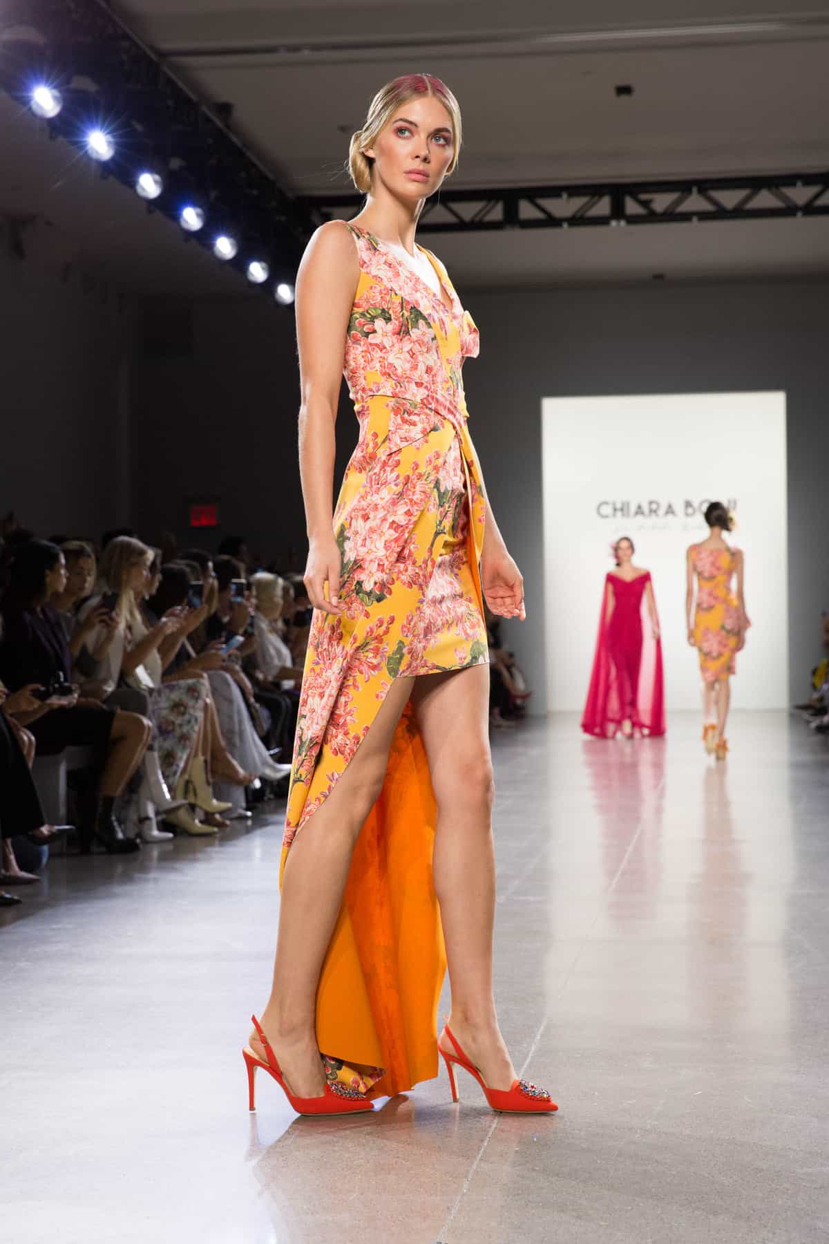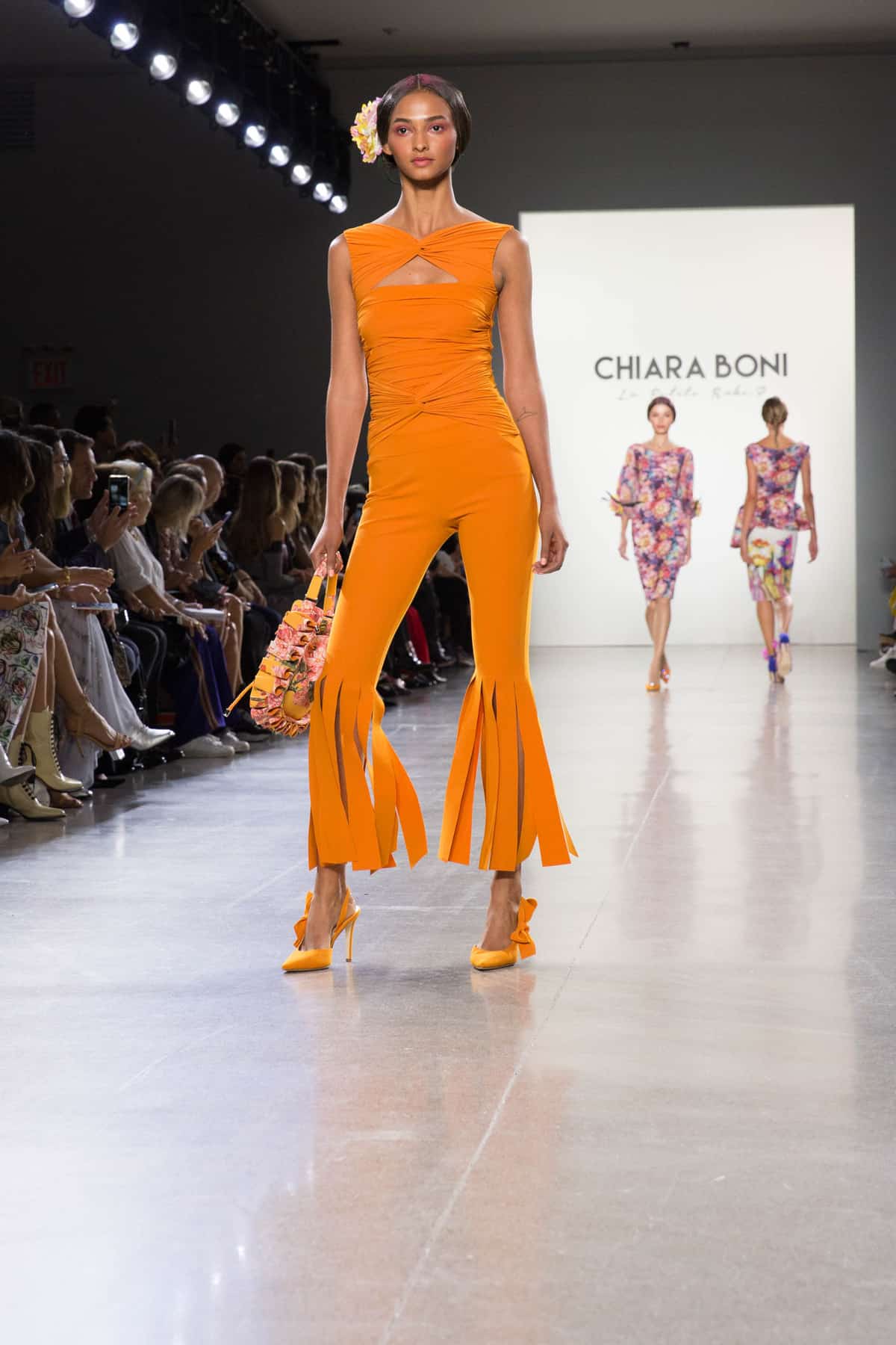 On September 11, 2018 at 4pm, Chiara Boni La Petite Robe unveiled her SS’19 Collection at New York Fashion Week. The Tahitian painting style of Paul Gauguin was the inspiration behind this gorgeous whirlwind of vibrant color and prints. Warm and luscious tones of yellow, amber, orange, red and black cherry highlighted this sophisticated collection and created a lively and energetic mood to compliment summertime.
