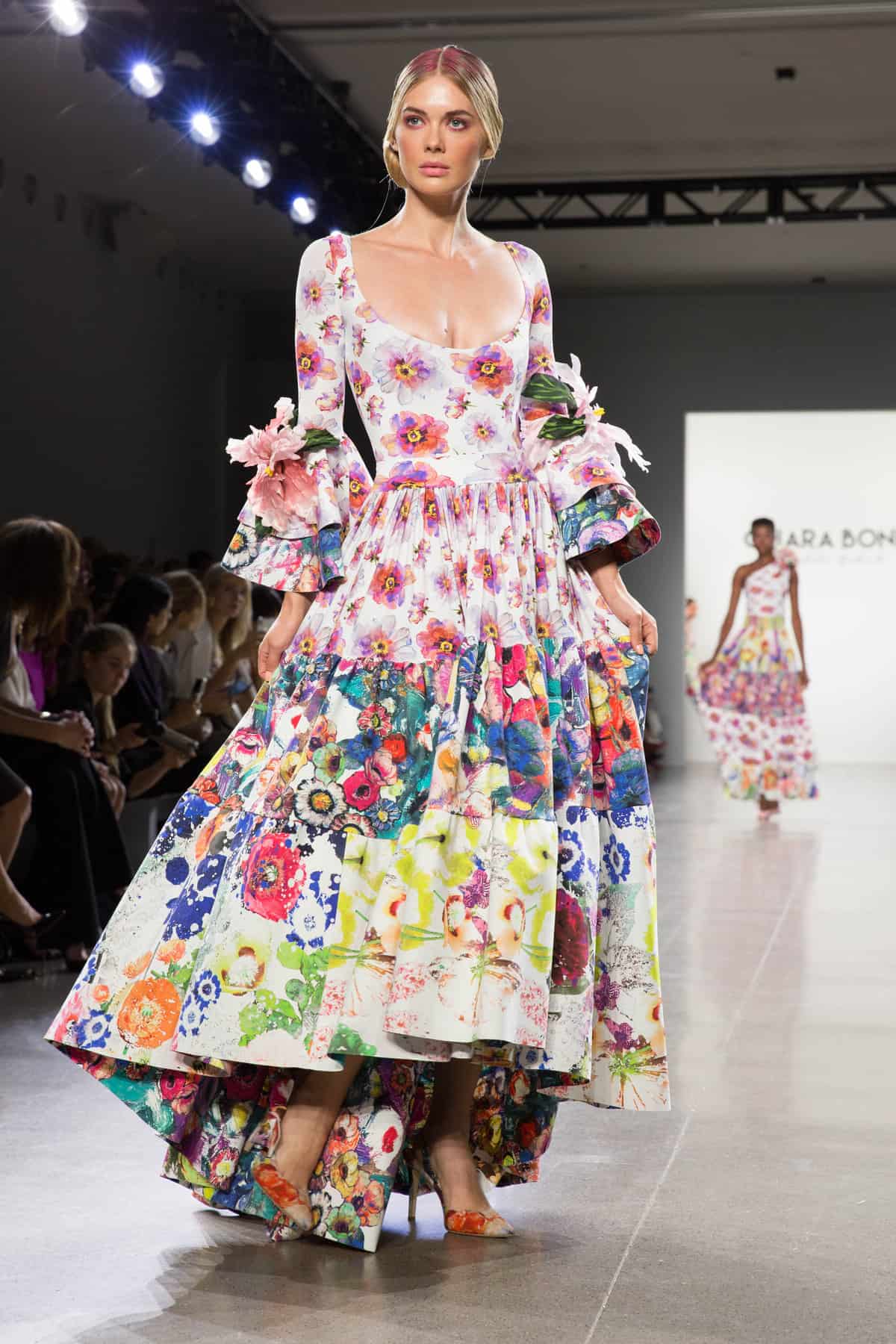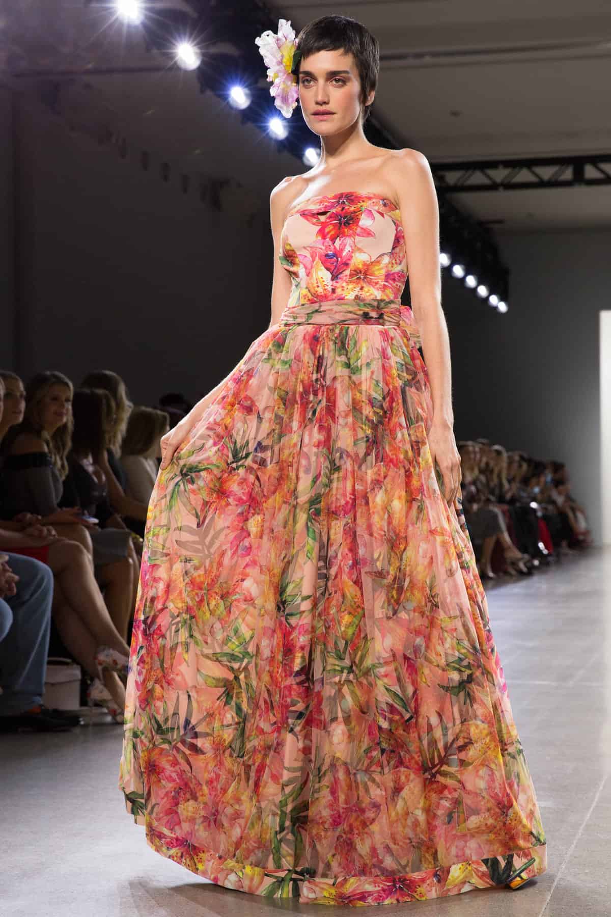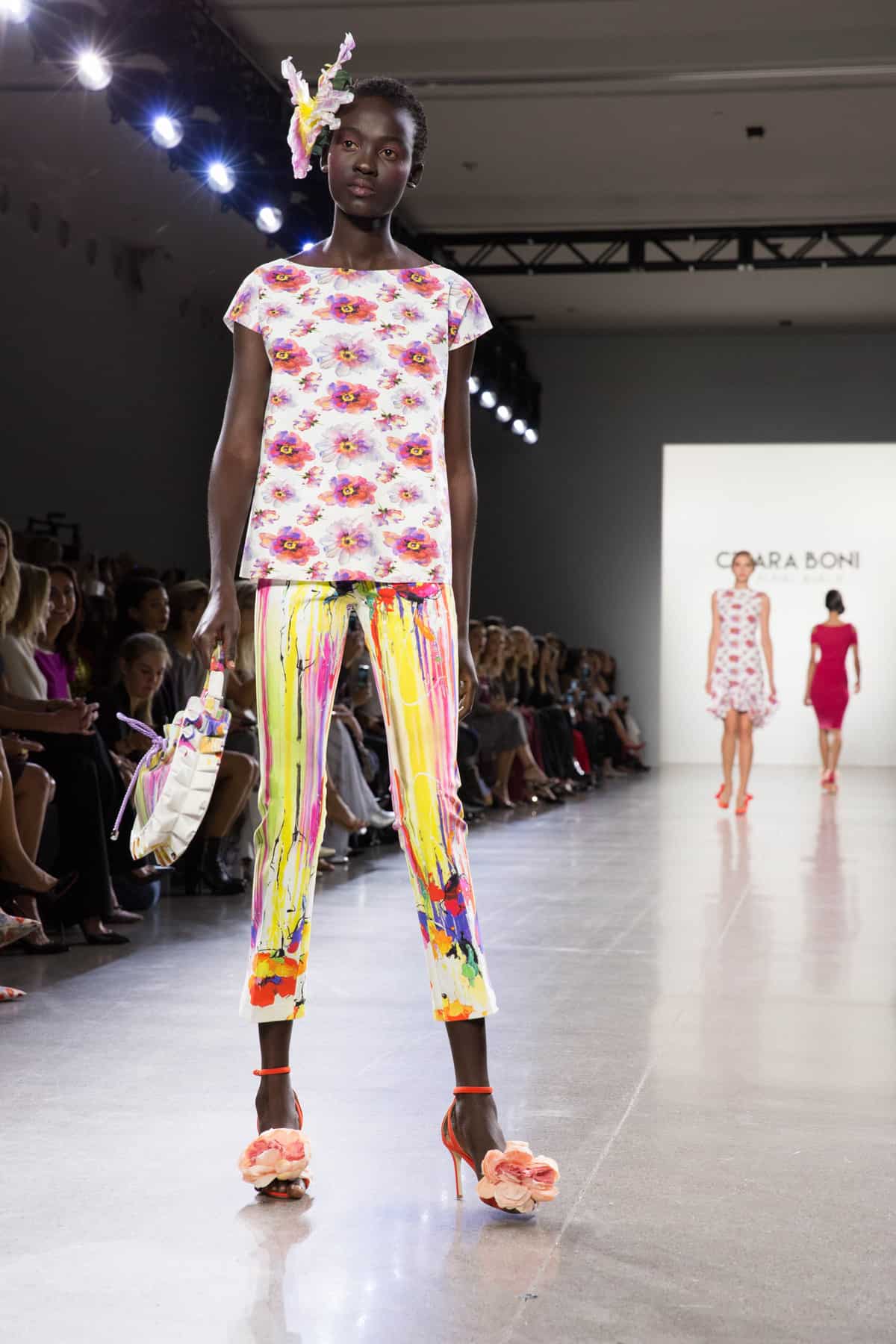 On September 11, 2018 at 4pm, Chiara Boni La Petite Robe unveiled her SS’19 Collection at New York Fashion Week. The Tahitian painting style of Paul Gauguin was the inspiration behind this gorgeous whirlwind of vibrant color and prints. Warm and luscious tones of yellow, amber, orange, red and black cherry highlighted this sophisticated collection and created a lively and energetic mood to compliment summertime.