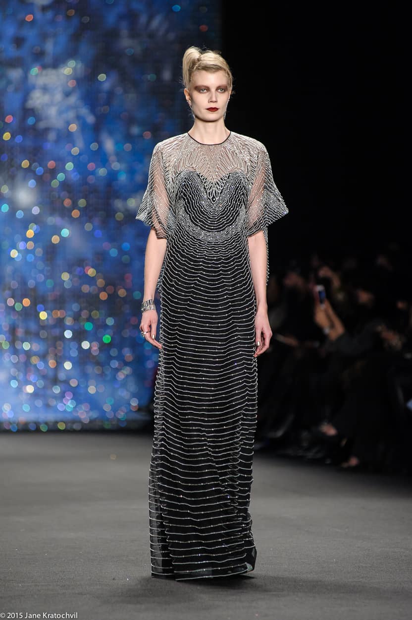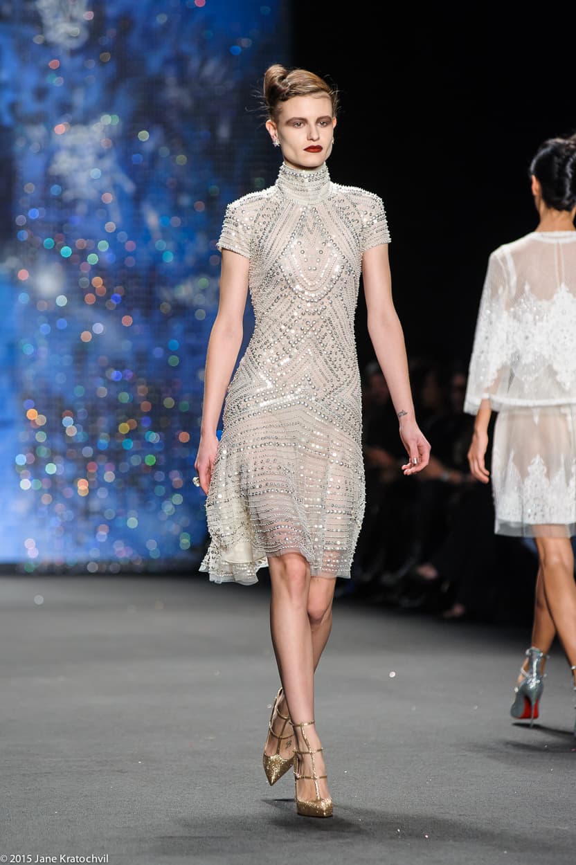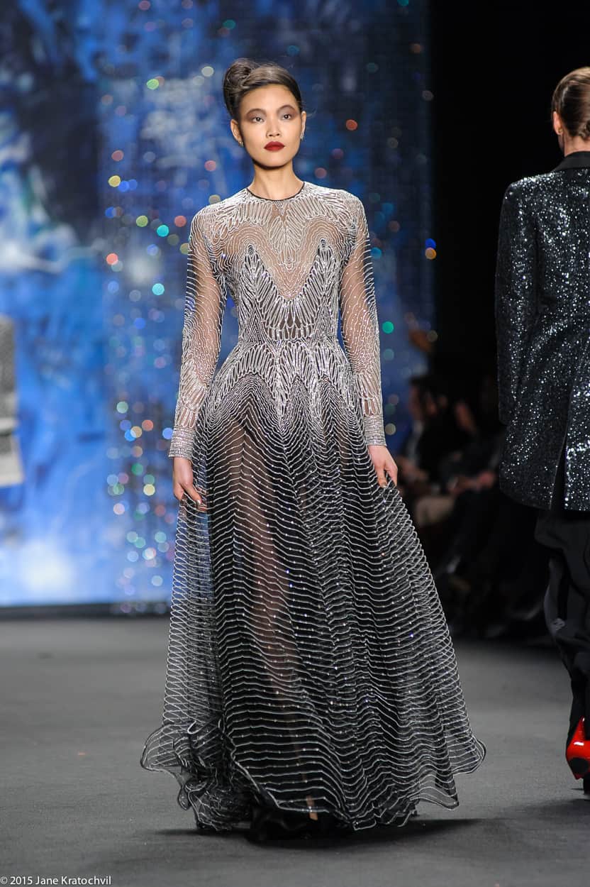 Naeem Khan celebrated 10 years of fashion at this season’s New York Fashion Week. The event resembled a large black-tie celebration. Khan ushered in opulence with heavily beaded fashions and accessories. Ornate evening gowns varied in silhouette, from body conscious to full flare. Plunging necklines and sheer fabrics heightened the sophisticated yet seductive allure of the collection.