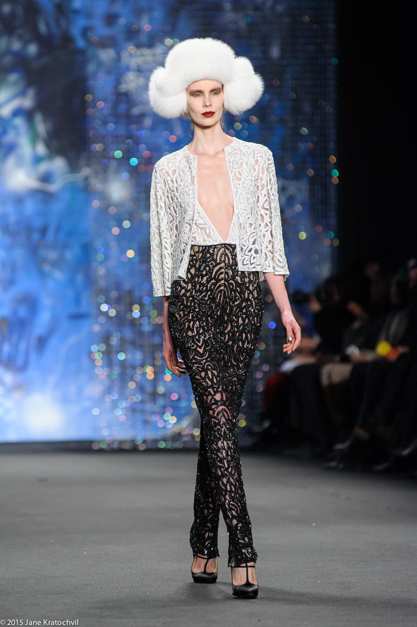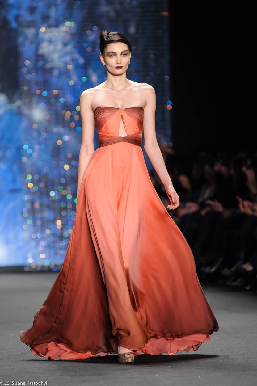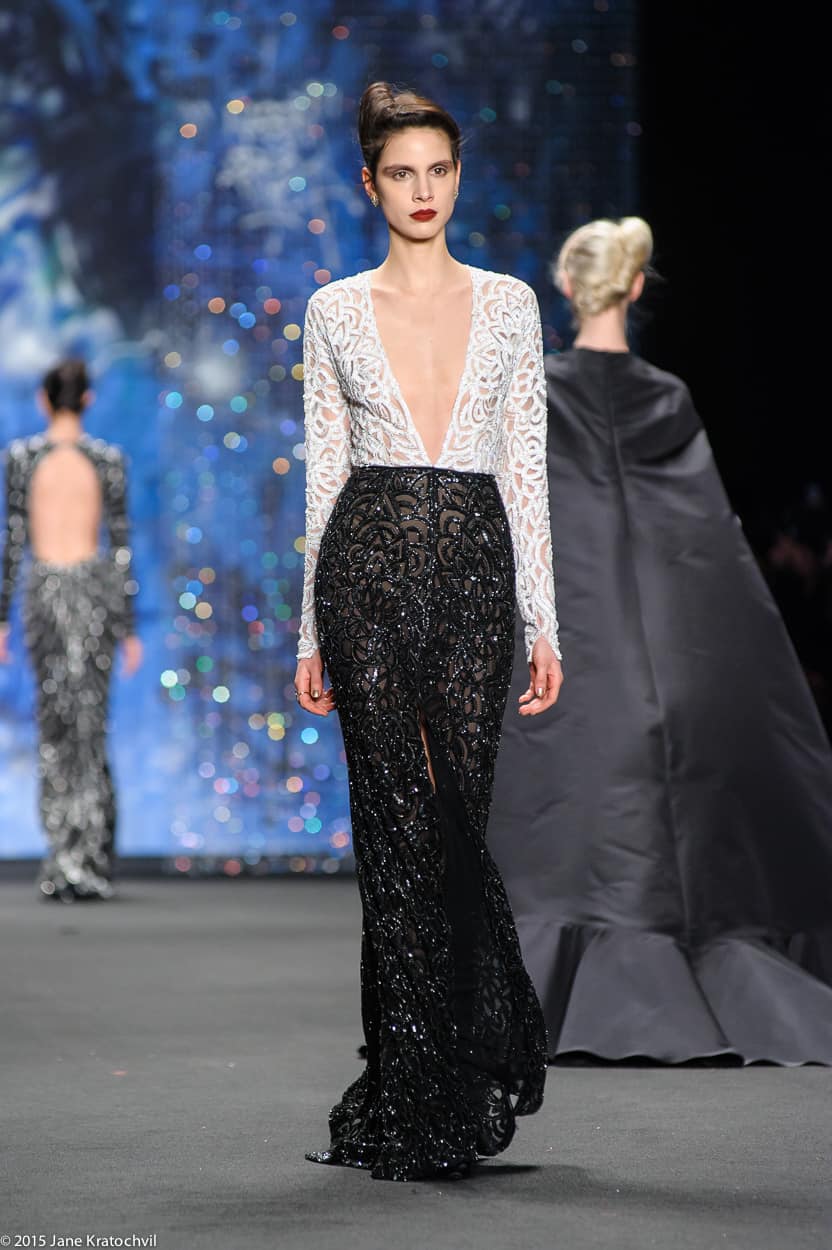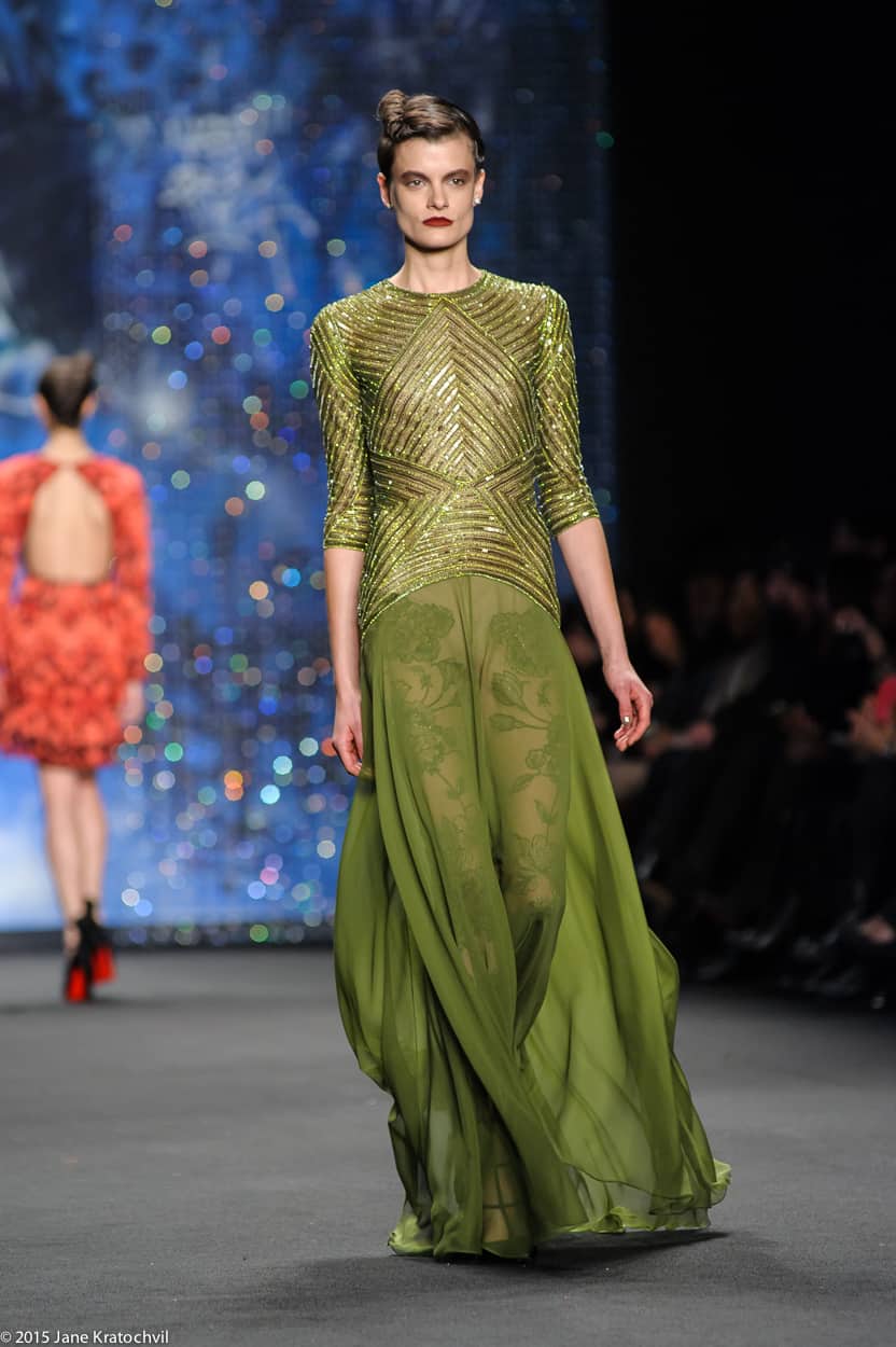 Naeem Khan celebrated 10 years of fashion at this season’s New York Fashion Week. The event resembled a large black-tie celebration. Khan ushered in opulence with heavily beaded fashions and accessories. Ornate evening gowns varied in silhouette, from body conscious to full flare. Plunging necklines and sheer fabrics heightened the sophisticated yet seductive allure of the collection.