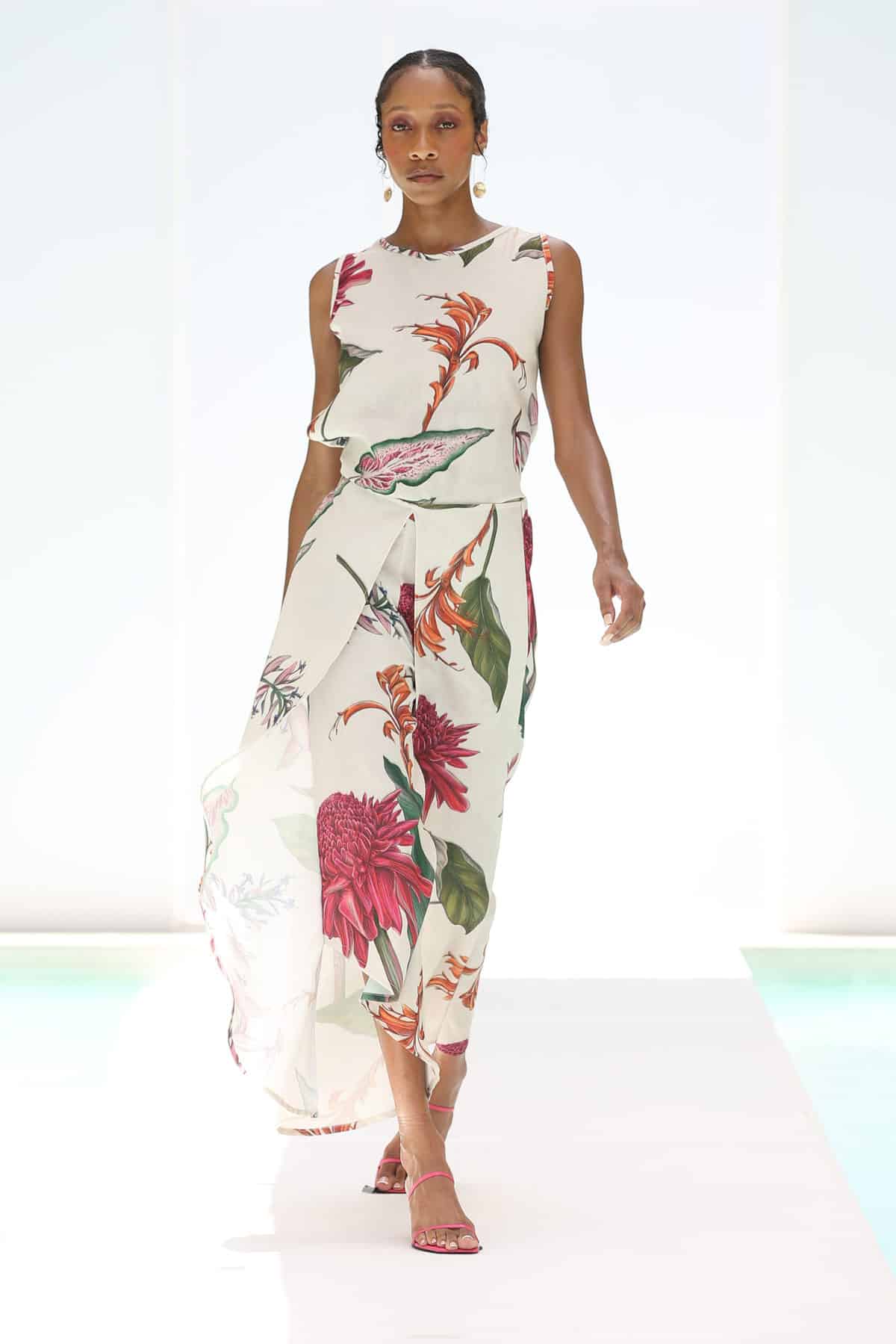 The multibrand fashion retail company offered wonderful looks from 65 different brands, such as the one in the featured image above, from Davi by Stace. Both neutral and bright colors in addition to floral patterns and dream-like trims were foundations of the swimwear and resort-inspired sets of garments. Among the collections, you’ll find anything you might need for your summer wardrobe. For instance, one or two-piece swimsuits, with or without sleeves, create looks that everyone can feel confident in.