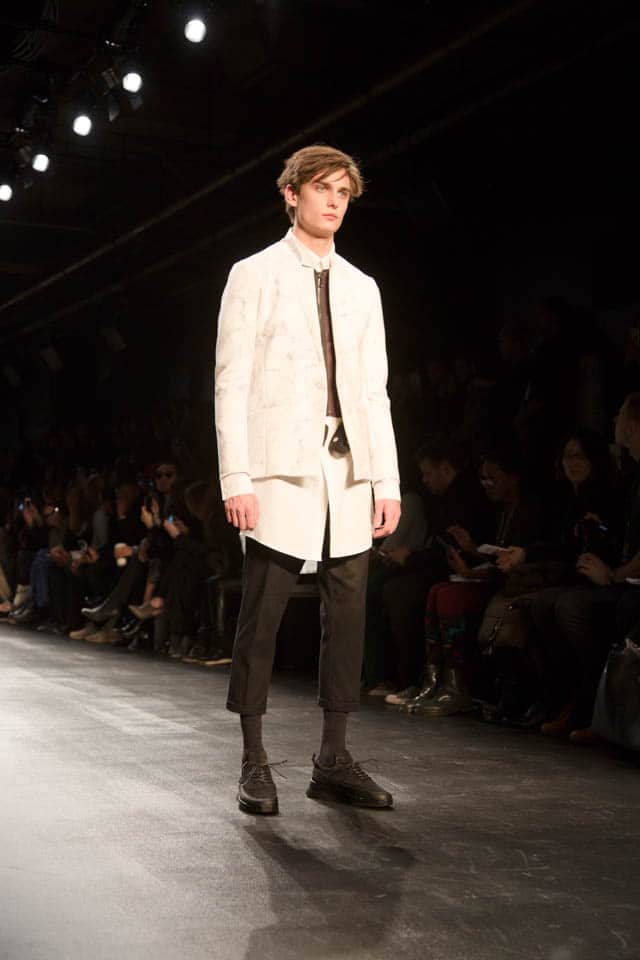 The second designer to show was Harrison Wong. This handsome menswear collection displayed a variety of outerwear styles including a down comfort poncho, heavy wool coats and some lighter casual styles. There’s something here for every urban man. Harrison Wong has recently entered a new chapter in his career by opening his first menswear retail shop at PMQ, Hong Kong’s exciting new arts and design hub in Central.
