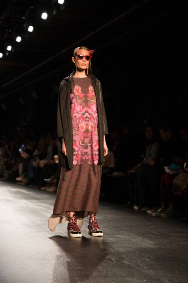 Loom Loop kicked it off with a beautiful display of floral and butterfly patterns. According to the designer team’s website, “The fabric we use for the garments was a famous traditional fabric of Guangzhou China. It is the best summer clothing fabrics, it does not stick to the body, and it is cool and comfortable, it remains its color in the fastness to sunlight.”[1] The airy garments flowed gracefully down the runway while butterfly headpieces and patterned sneakers topped off the look.