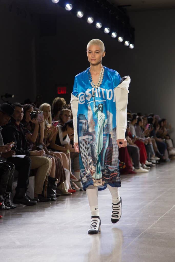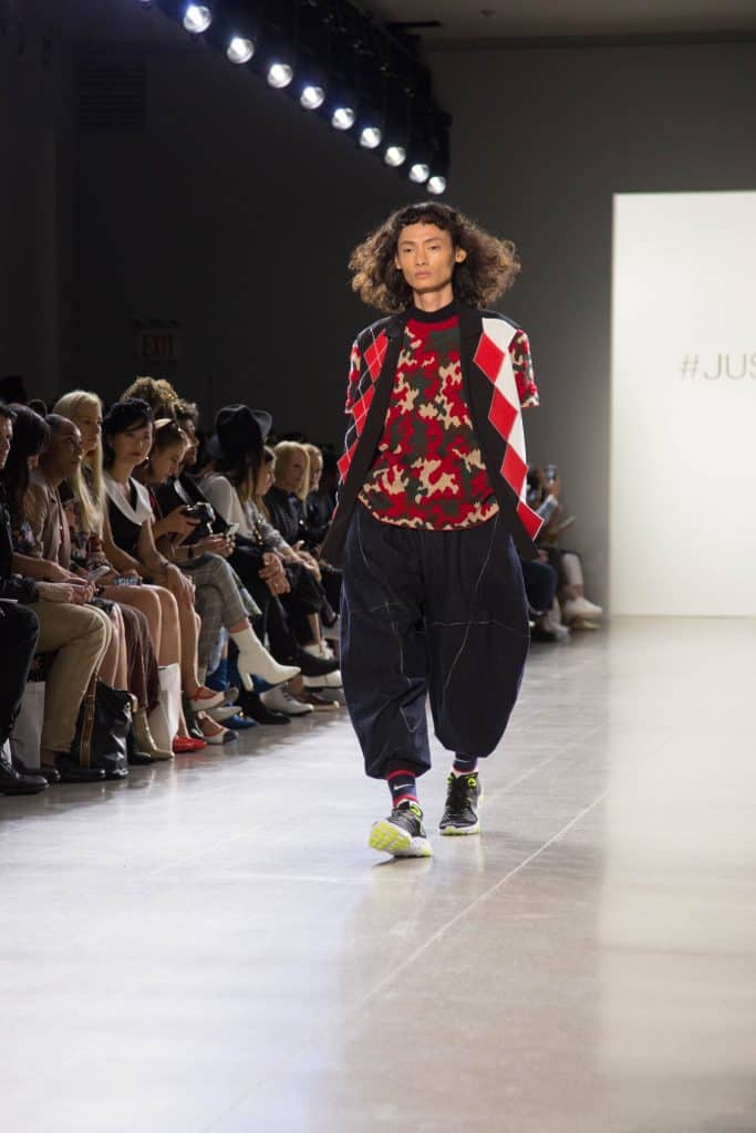 Justin Yu-Ying Chou, Taiwanese street wear designer for the brand JUST IN XX, presented his SS’19 Collection on Sept. 10, 2018 at New York Fashion Week. Entitled F@$HITION, this collection “blurs the boundaries between modern life and art in an era that largely still worships a specific type of prettiness”, according to the designer. His idea is to disrupt the idea of beauty in any standard form. He uses clothing design as a way to criticize the age of mass social media use and widespread photo retouching.