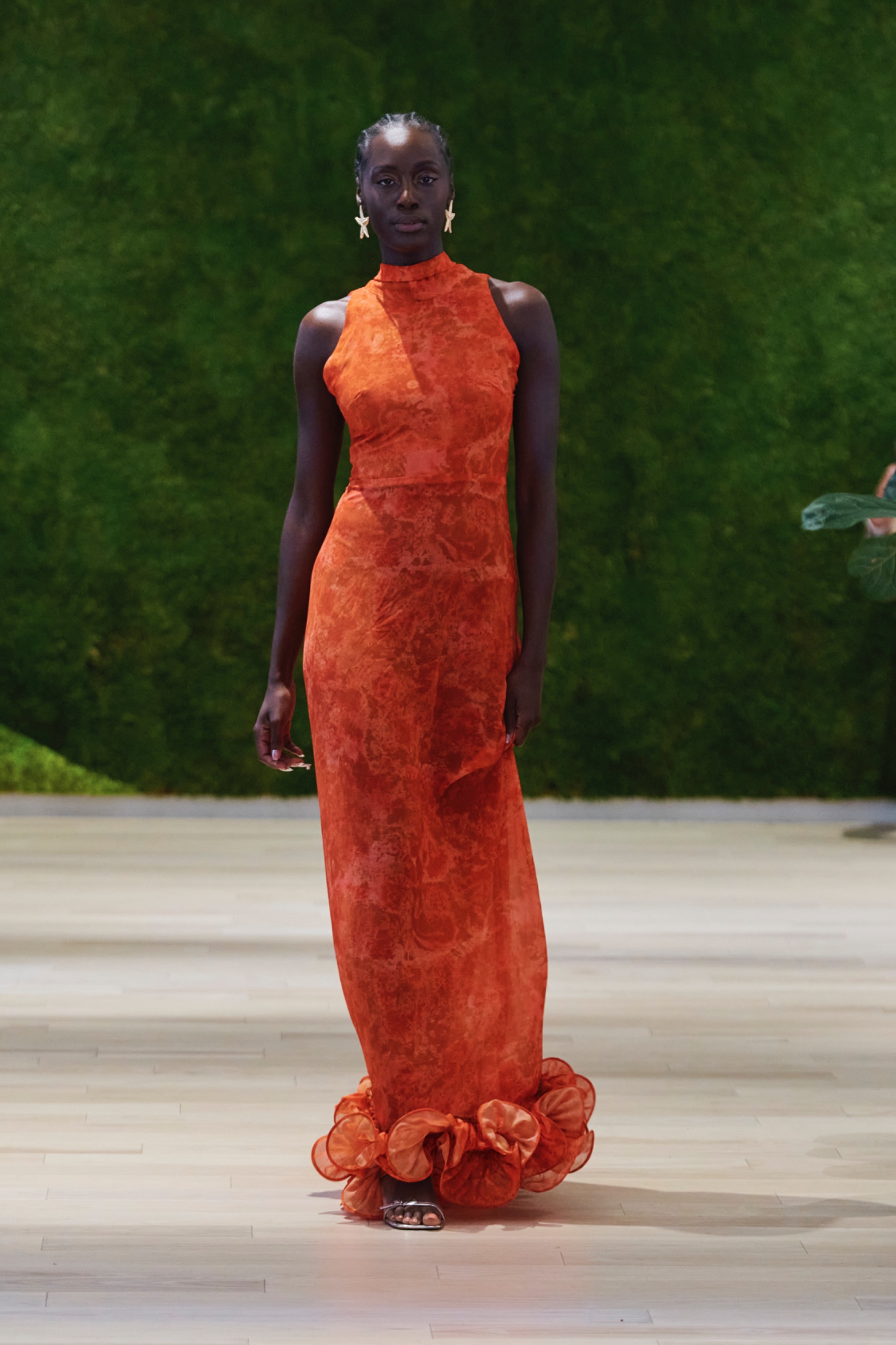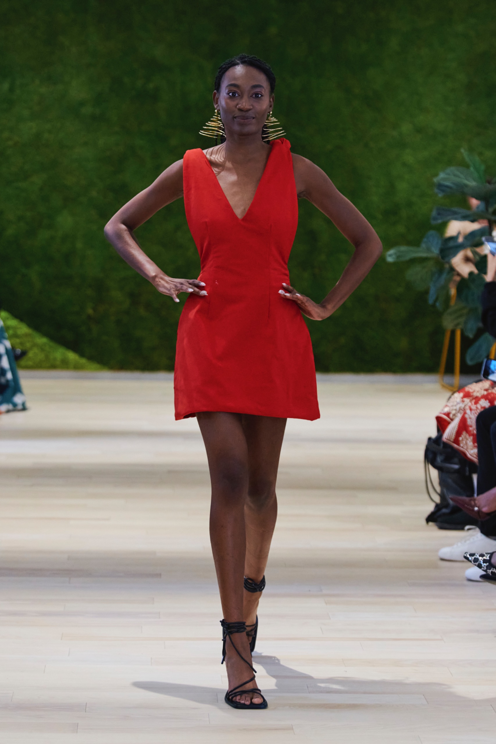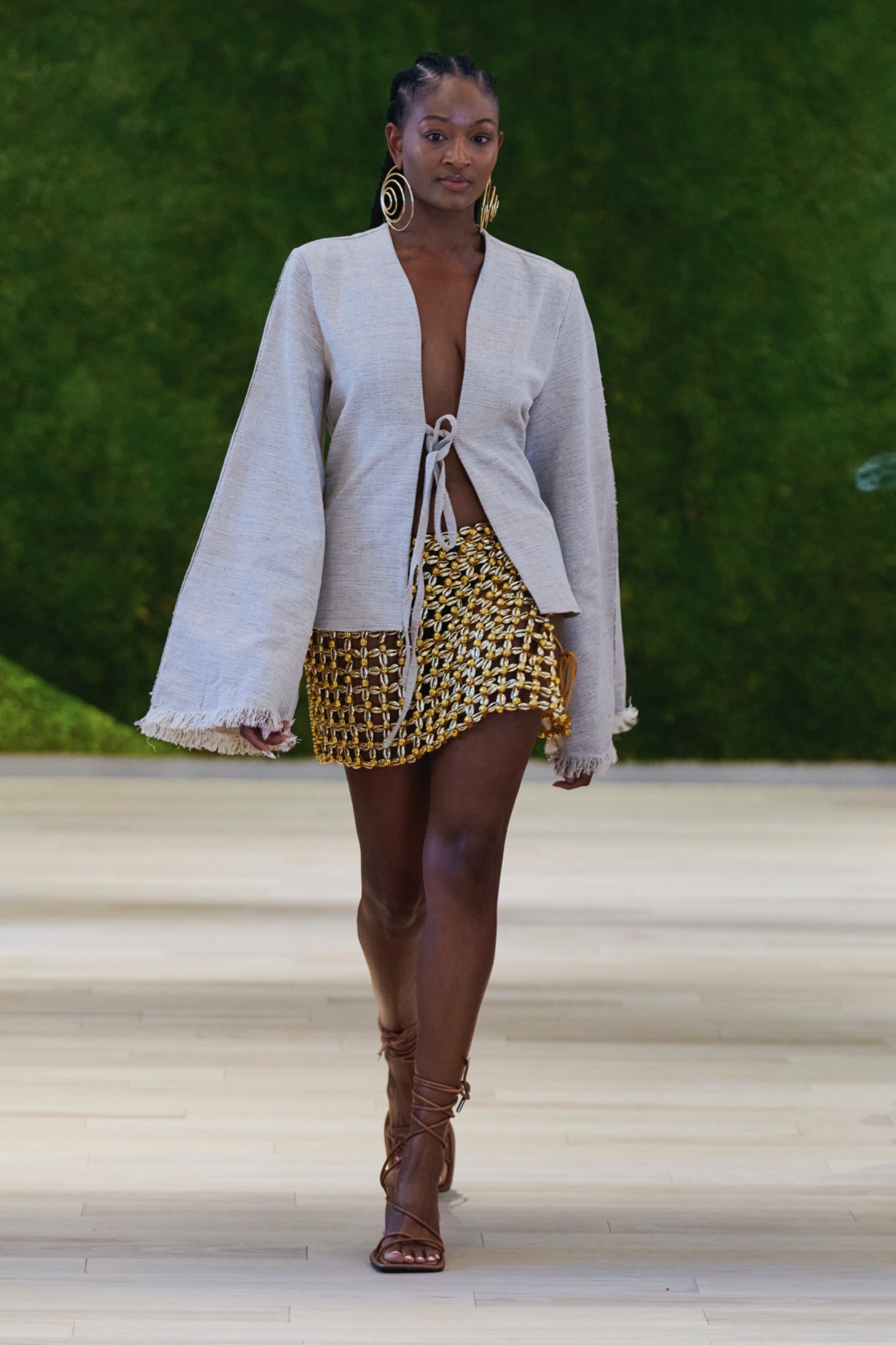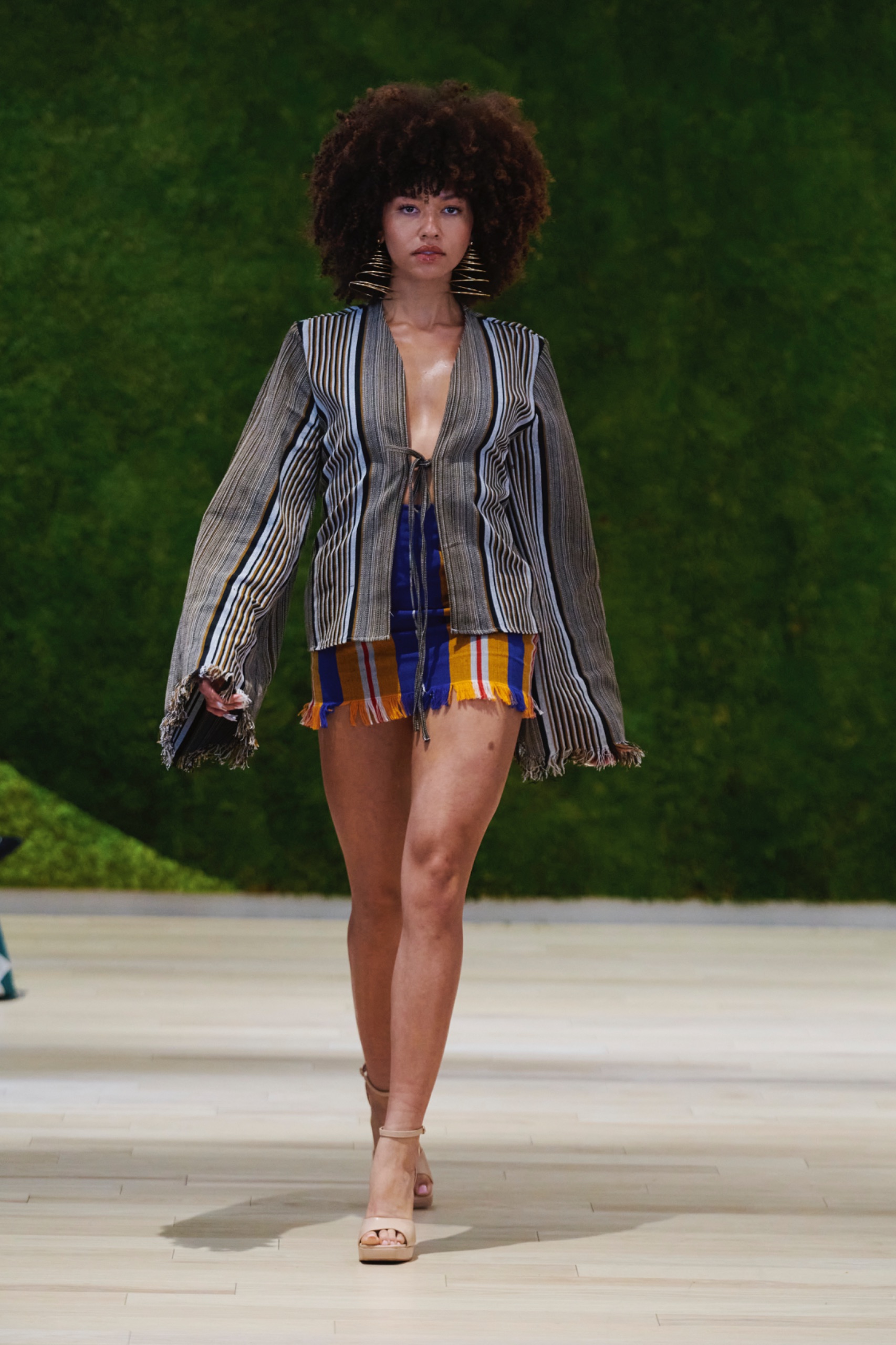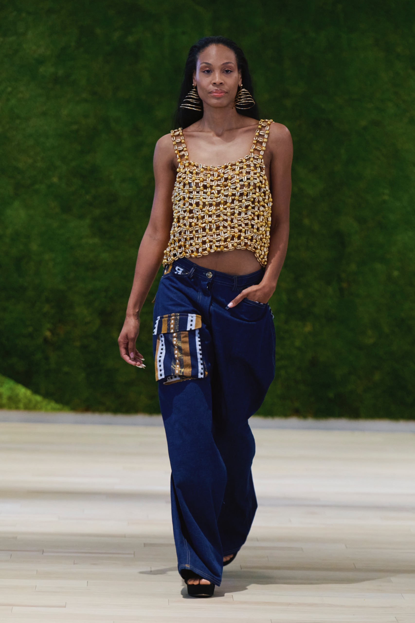 Before the runway event, The Green Show featured a series of panels that approached multifaceted aspects of sustainability. Moderated by Jan Roessner, CEO of One Earth Rising, the panels were designed to explore the environmental, social, and economic impacts of sustainable practices, and included contributions from a diverse group of industry leaders. Michelle Adepoju herself participated, alongside Sergeant Johnny James Hines III from the New York City Police Department’s Youth Strategies, Peter Rose, Senior Director at Hydro Quebec, Anthony Boccardi, President of The HC Spirits, João Campos, Growth Manager at B LAB, and Ellen Jackowski, Chief Sustainability Officer at Mastercard.