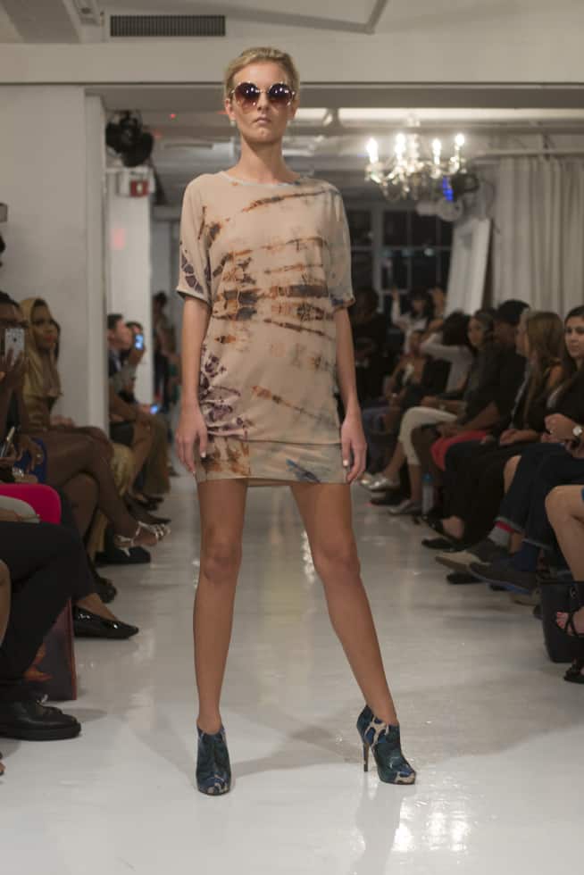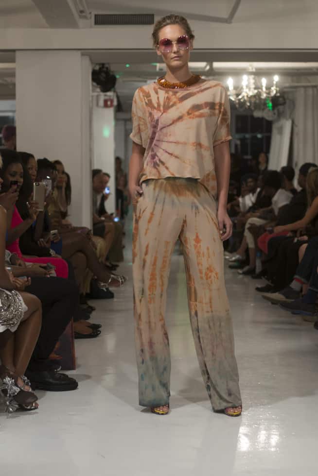BATISTA opened the show with a tranquil color palette of grays, creamy tans and salmon. This collection was inspired by the spectacular colors of the Caribbean Flamboyan tree as the piercing rays of sunset illuminate its splendor.