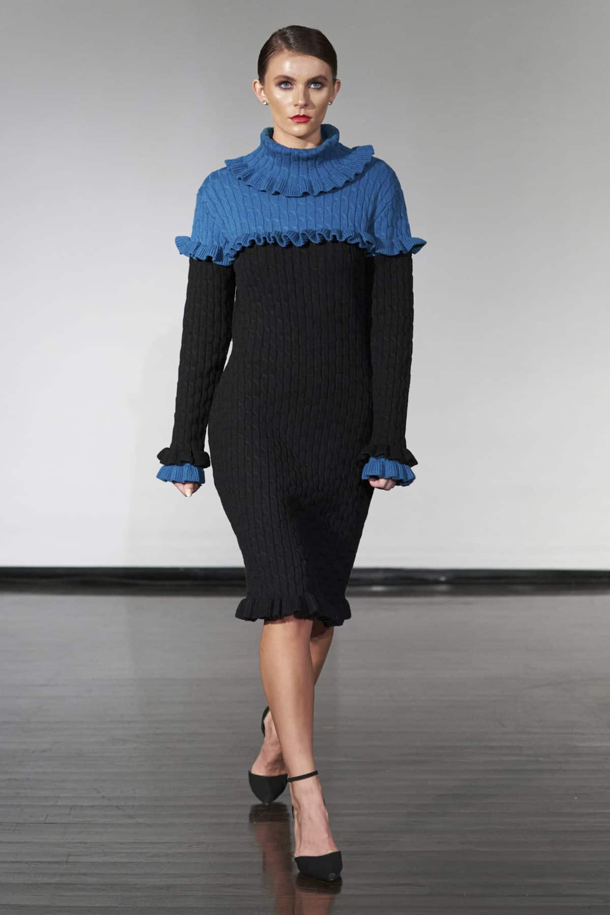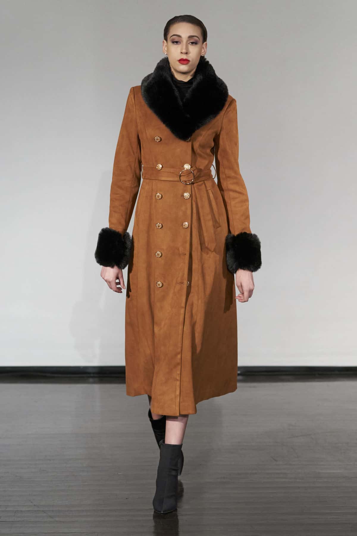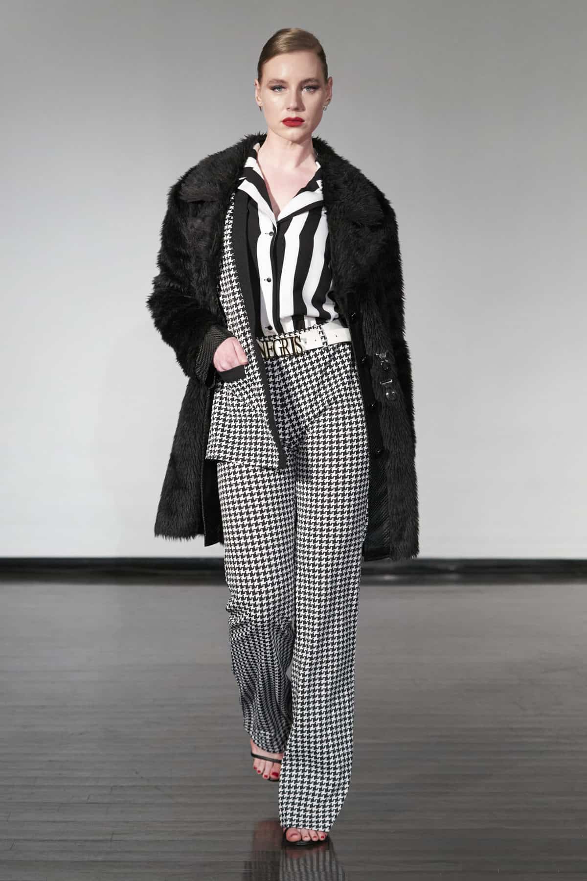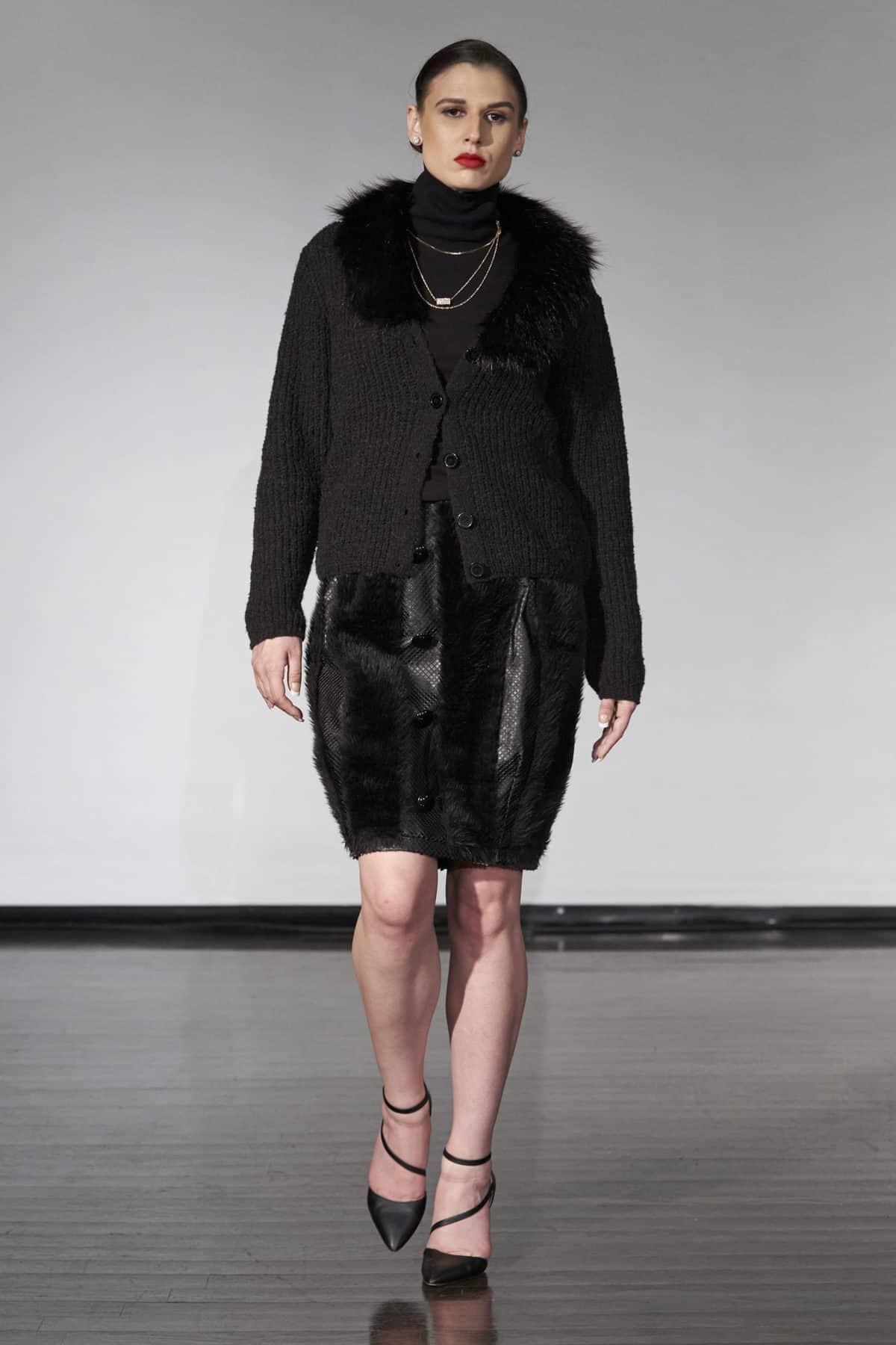 Whether it was the beautiful black faux fur coats or the dresses with more traditional cuts and light fabrics with a bit of movement, this presentation of Negris Lebrum vestments offered an aura of well-behaved romantic seduction. Although not all pieces closely conformed body shape, they consistently achieved the tricky balance of providing a modest notion of the wearer’s silhouette.