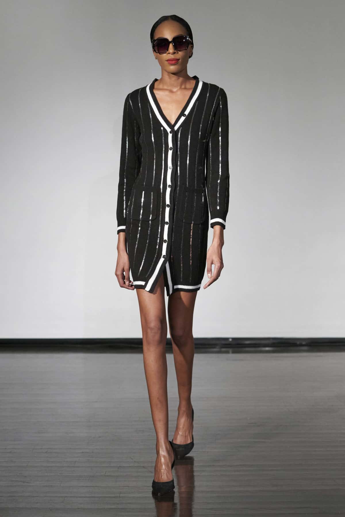Creative director and founder Travis Hamilton presented a collection with classic pieces simultaneously conservative and sexy, providing each woman wearing the brand with the freedom to define herself. Stylists adorned models with vintage hairstyles, dark sunglasses and defined waists; some garments looser, exuding a sense of sensuality through other details. Prominent colors were black and white, with some neutral colors and darker tones of blue and yellow.
