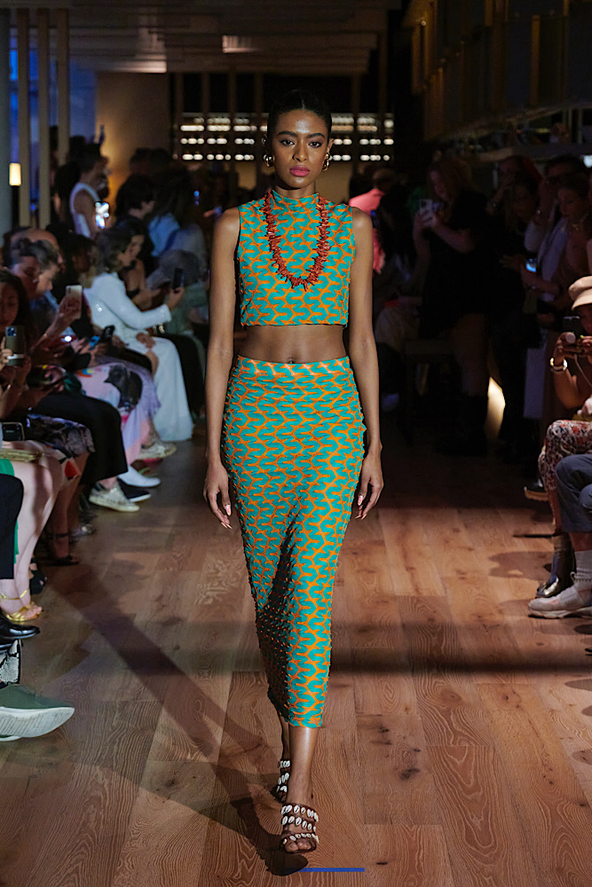 Among the standout pieces were flowing kaftans that mimicked the ebb and flow of ocean waves. Floor-length shirts adorned with intricate coral-inspired patterns added depth, while ruffled bandeaus brought to mind the playfulness of sea creatures. Dur Doux also introduced one and two-piece sustainable swimwear and beachwear, encouraging viewers to embrace eco-conscious fashion choices for the season.