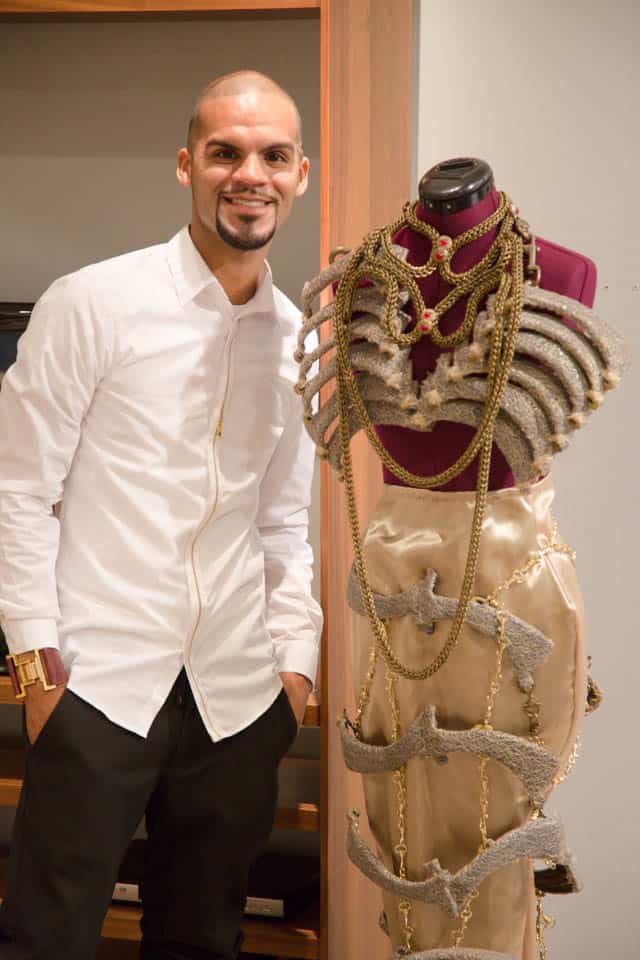 Designer Rajé created a collection inspired by musical instruments and includes actual violin shoulder rests in some of his pieces. The jewelry is nothing less than strong and bold. Rajé rages with the shared story of humanity yet gives each individual the voice and the chance to be heard.