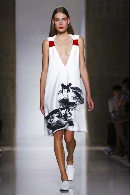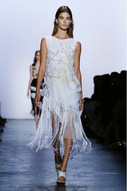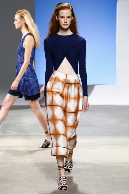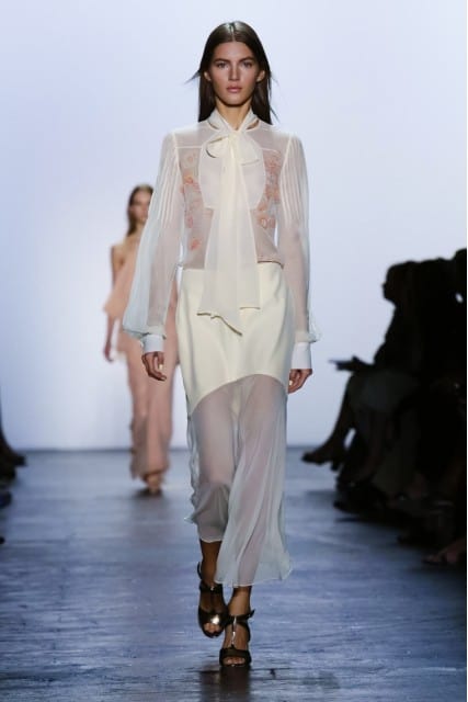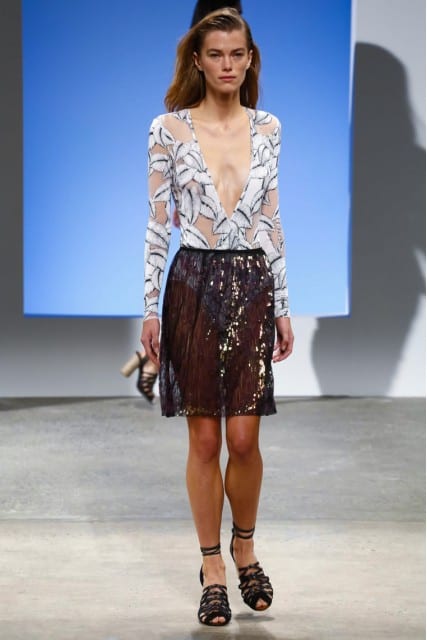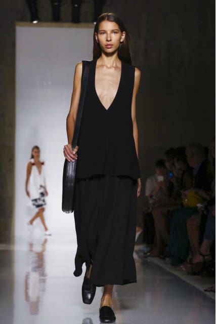 Thakoon’s collection was very skin baring with deep V’s, short shorts, and cut-outs. Victoria Beckham also featured deep V’s, but paired them with knee-length, or ankle-length skirts.