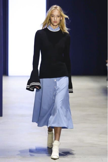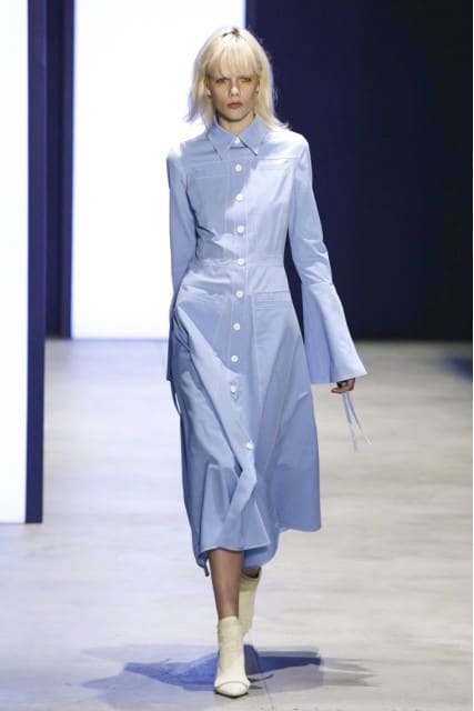 Forget bell-bottom pants, let’s talk bell-bottom sleeves! Or I’m sure Derek Lam just refers to them as flared. While flared hems on pants have us thinking seventies, flared sleeves portrays a medieval style.