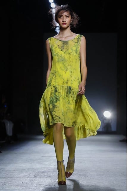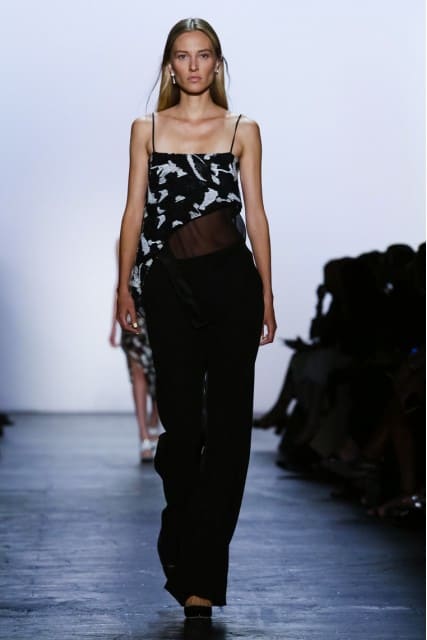 Prabal Gurung, channeling Nepal, and the colors of Buddhist Monks’ robes, presented a diverse collection with a plethora of sheer fabric overlays, circle hem skirts, and a magnificent pairing of orange and yellow looks. Whether color-blocked, or solo, the hues of orange stole the show.