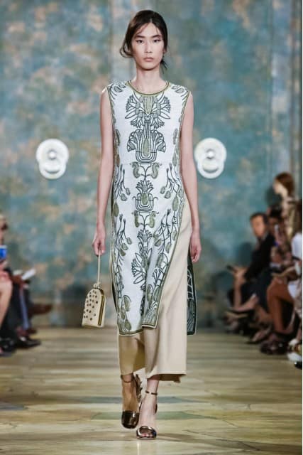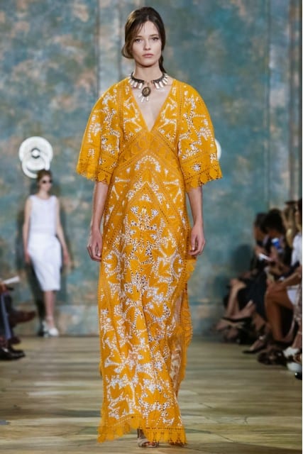 Both Rodarte and Tory Burch, featured looks with a lot going on. Rodarte had layers upon layers lace, and patterned tights, while Tory Burch featured a plethora of print options.