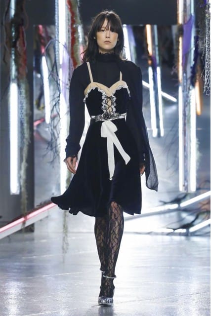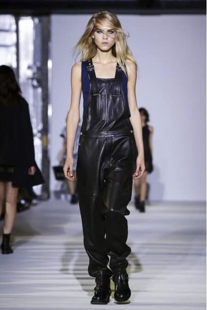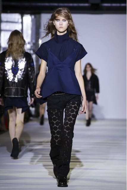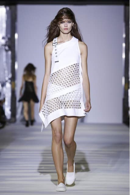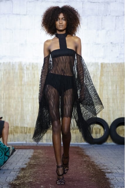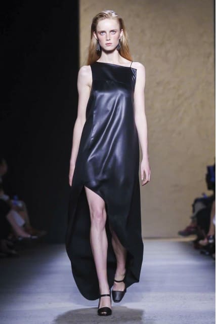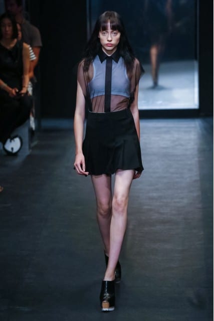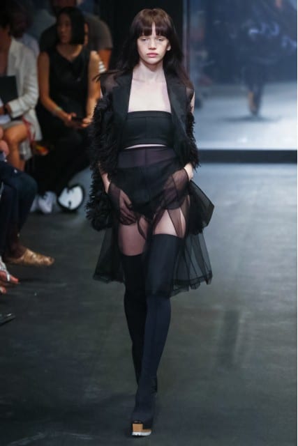 Mebostad wasn’t the only one favoring see-through fabrics, nor the tough-girl persona. Vera Wang featured several looks with see-through separates, and the edginess of her collection was cemented with dark colors, high waisted shorts, and bandeau tops.