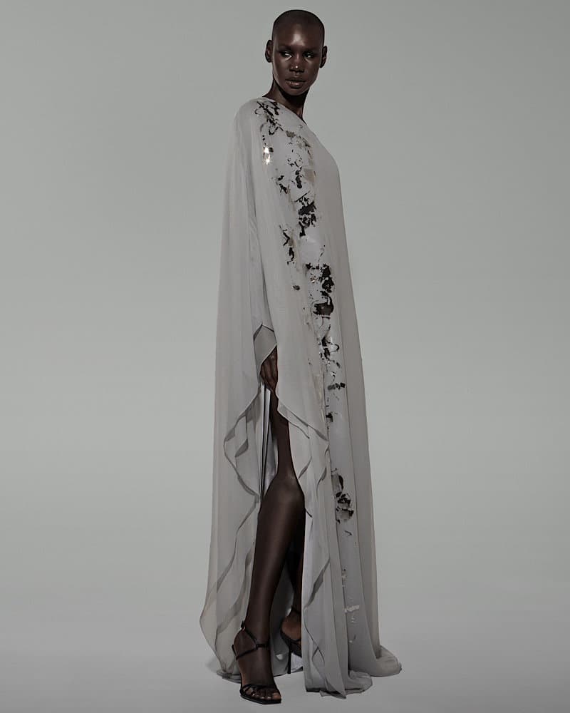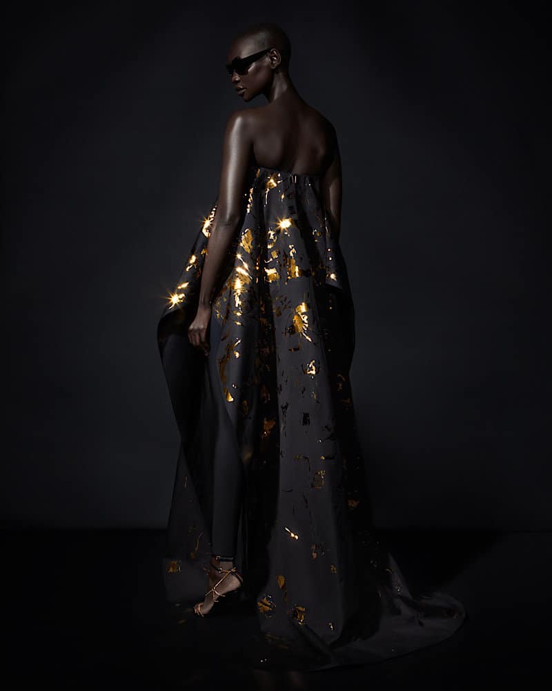 Fashion designer Robert Rodriguez recently launched KOLTSON, a luxury eveningwear collection designed to create a common thread between art and fashion. The brand had its debut during New York Fashion Week, on February 14th, 2023, where the Fall/Winter 2023 collection was showcased. Rodriguez partnered with abstract expressionist Vicky Barranguet for the inaugural collection to create a series of seven canvas paintings titled “THREADS” that inspired the collection’s prints, foiling, silhouettes, and embroideries.