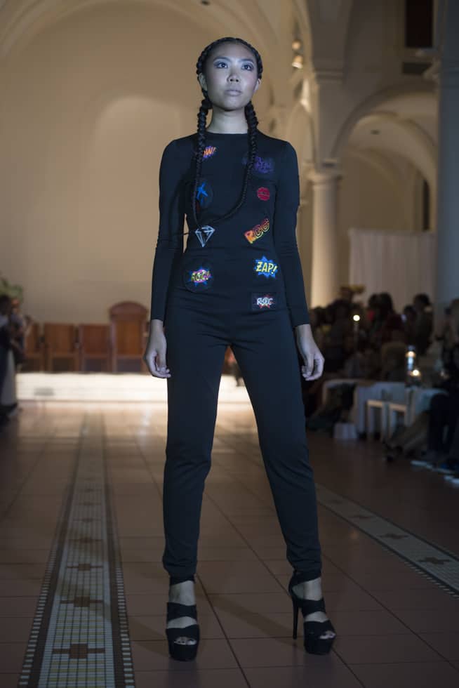 With and incredible opening performance from V Bozeman known for her powerful vocals as well as her opening to the premier episode of FOX’s Empire, the crowed was presented with the tone of the show. Starting out in a bold feature of prints the read ZAP! and a patch of red lips, the show was off to an interesting start.