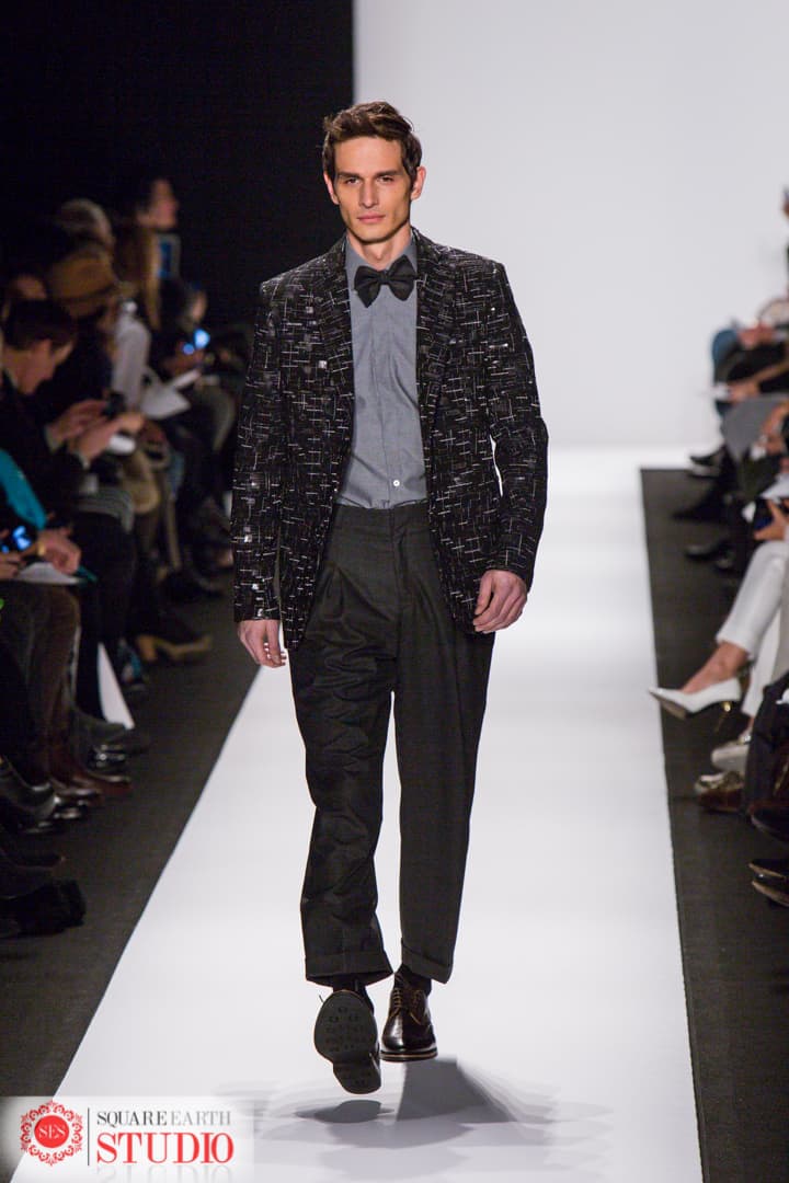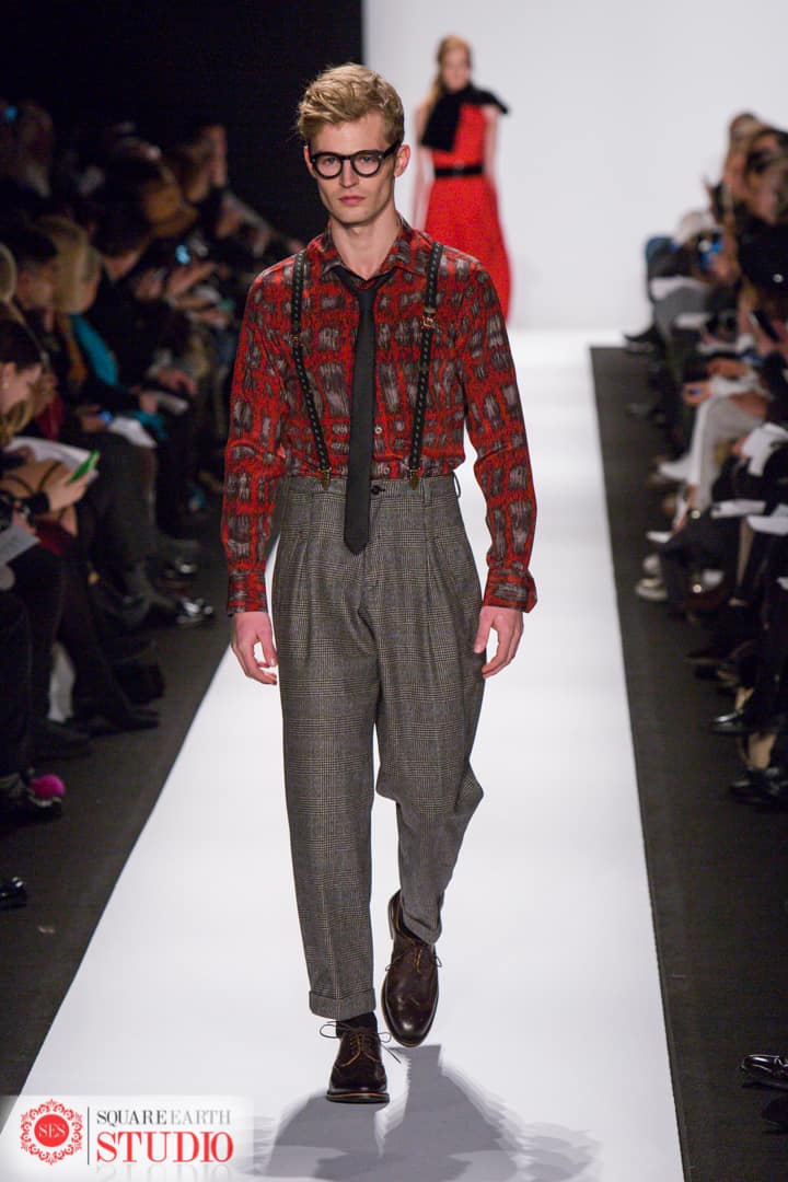 It seems to be that Carmen Marc Valvo is a fan of plaid, or as trend jargon dictates, tartan. Valvo’s runway featured tartan looks from blazers, to coats, dresses and scarves. Even his flowing skirts had the tartan print. The use of tartan in his collection, added Carmen’s runway to the list of runways featuring the popular prep school theme that we’ve seen earlier this week (Rachel Antonoff, Lacoste, etc.). To further clench the theme, models wore glasses, bow-ties, suspenders and skinny ties.