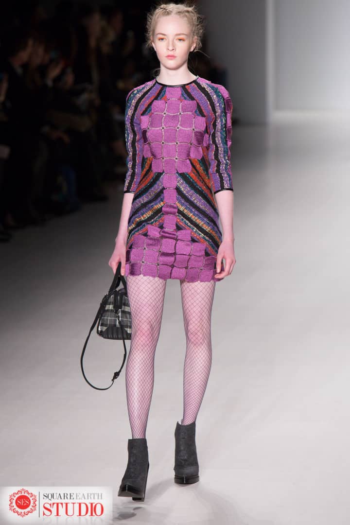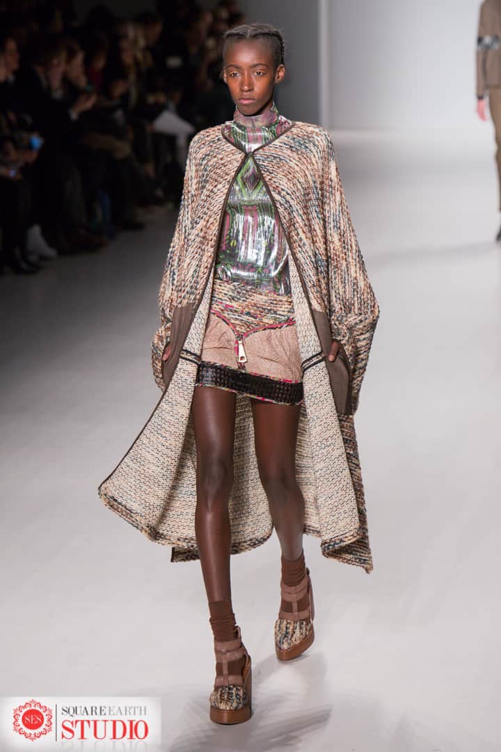 Plaid remained a popular print of choice for Custo Barcelona, who also showed his Fall 2015 Collection on Day 3 of Fashion Week. However, in addition to numerous plaid separates from boots to skirts, Custo featured a variety of prints. On his runway the familar Navajo-inspired prints appeared, geometric prints, and even prints created by sewing different colors and textiles of fabric together. It was a very unique and fun runway.