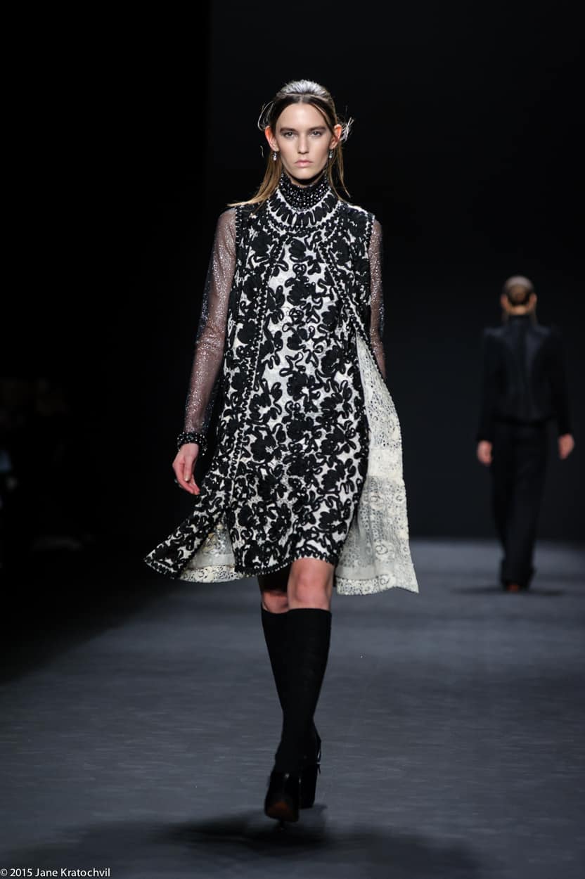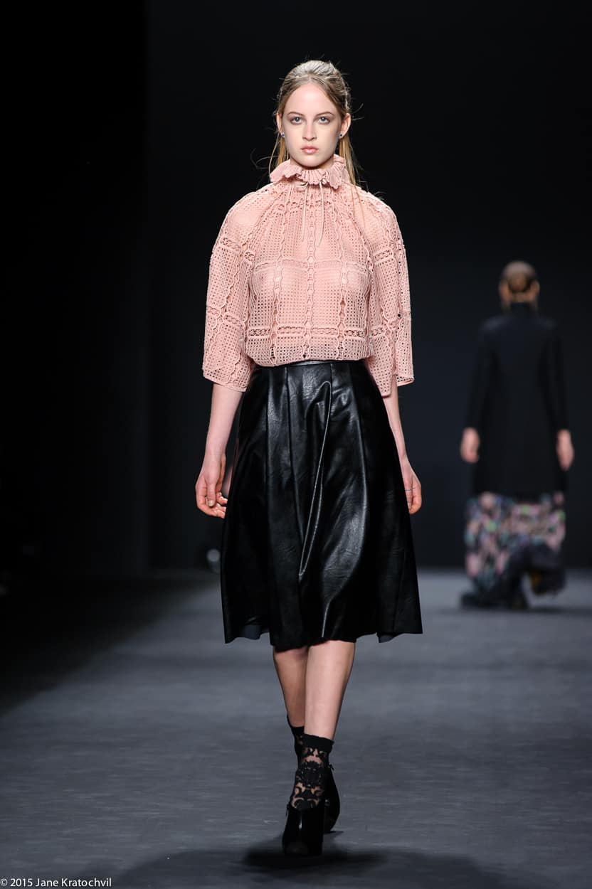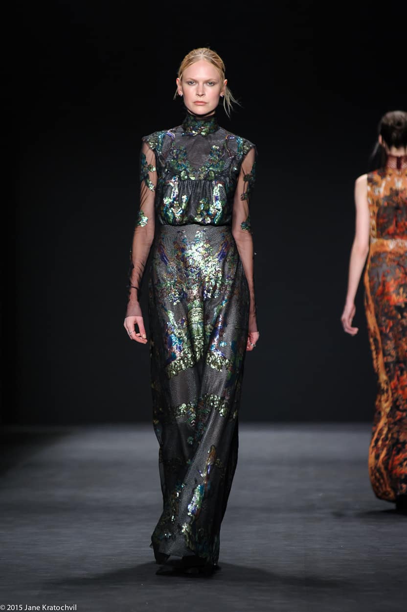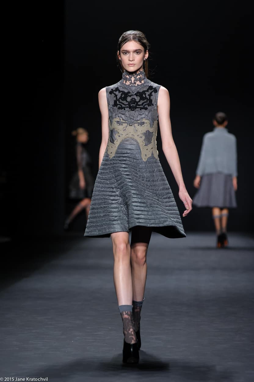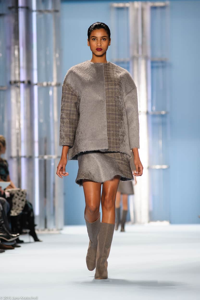 High-neck collars didn’t stop at the Alice + Olivia presentation. Vivienne Tam seems to have tapped into the regal silhouette as well. More than a few of her models came down the runway in lace or printed high-neck lines. This trend will definitely take the traditional turtleneck to new levels. Vivienne Tam’s collection was mostly dark in color palette minus a few khaki and red ensembles. Her collection, as usual, featured a variety of prints and fabric choices.